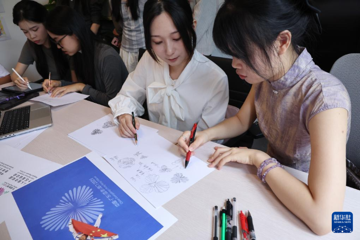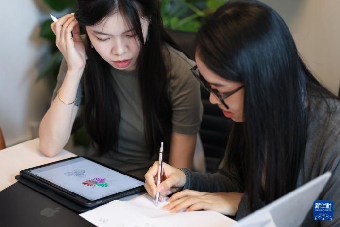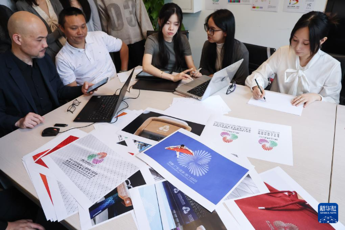 广州美院刘平云设计团队成员复盘十五运会和残特奥会会徽的设计和修改过程(11月8日摄)。新华社记者 刘大伟 摄