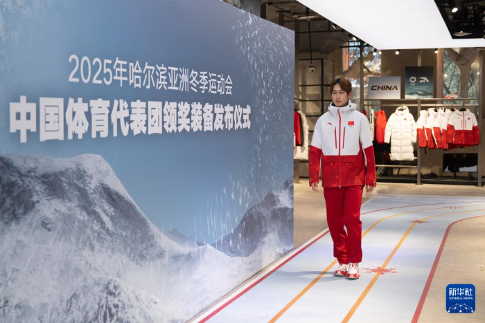 当日,2025年第九届亚洲冬季运动会中国体育代表团领奖装备在哈尔滨正式发布。北京冬奥会冠军徐梦桃,中国短道速滑运动员刘冠逸、臧一泽,中国速度滑冰运动员阿合娜尔·阿达克、都浩楠通过走秀展示中国体育代表团领奖装备。