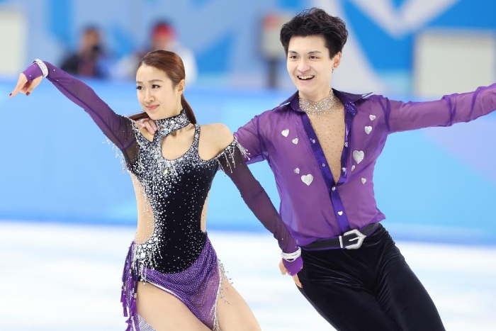 2月11日,第九届亚冬会花样滑冰冰上舞蹈韵律舞比赛在哈尔滨举行。图为中国组合任俊霏/邢珈宁(右)在比赛中。新华社记者 赖向东 摄
