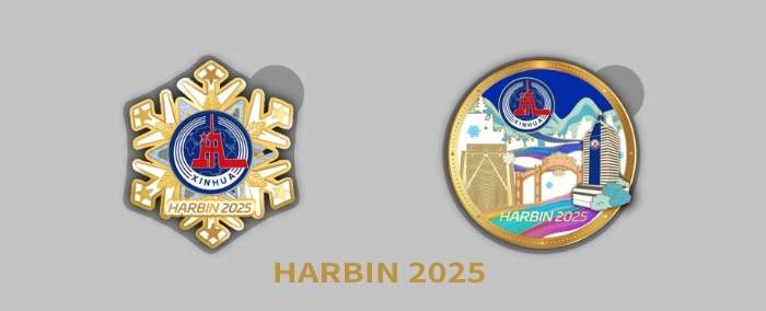 哈尔滨亚冬会新华社官方纪念章一套(两枚)