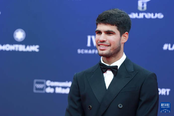 4月21日,西班牙网球运动员阿尔卡拉斯出席红毯仪式。