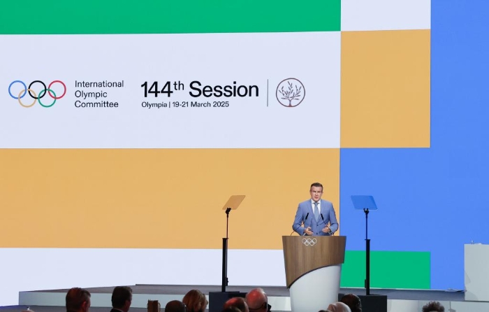 班卡在国际奥委会第144次全会上发言。新华社记者 曹灿 摄