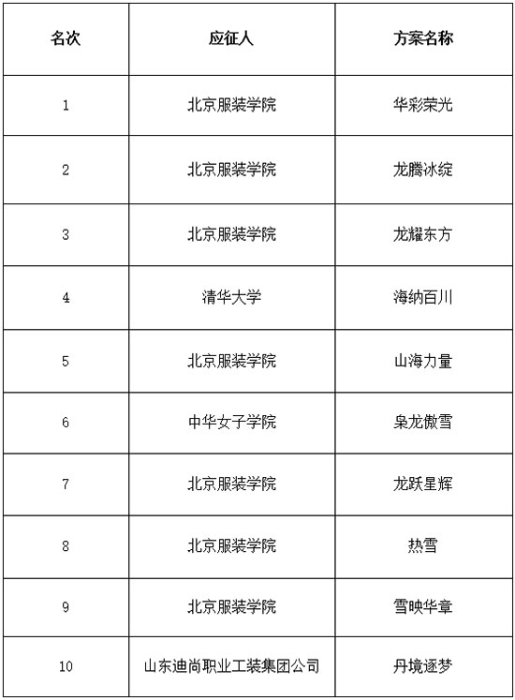 领奖服获奖方案名单