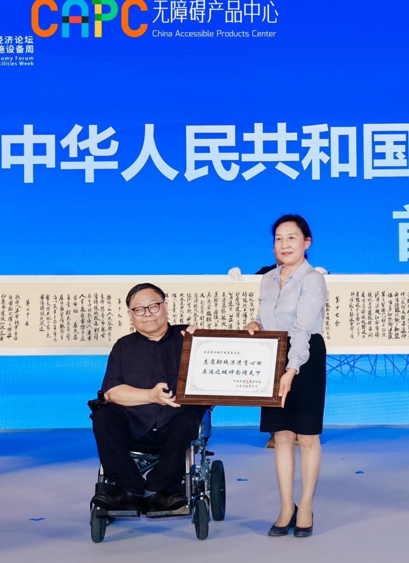 6月26日,北京奥运城市发展基金会理事长李拥军应中国助残志愿者协会邀请,出席“2025中国无障碍经济论坛暨无障碍产品与设施设备周”活动。活动现场,由中国著名书画艺术家都本基先生创作的长度约为60.28米的《中华人民共和国无障碍环境建设法》手书长卷首度亮相。全国人大常委会委员、中国助残志愿者协会会长吕世明向北京奥运城市发展基金会颁发致谢匾。