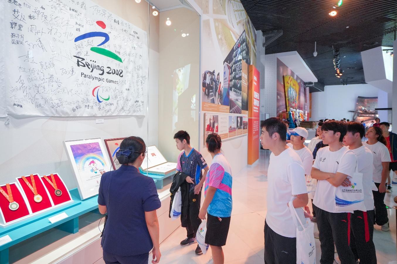 在观展中,残疾运动员在讲解员的引导下,沿着陈列展线,聆听讲解,仔细观看每一件展品,不时停下来,认真阅读文字说明,互相交流。特别是北京2022年冬残奥会和北京2008年残奥运会的展陈内容引起他们极大关注。他们深刻体会到成功举办一届“有特色、高水平”的残奥会,实现“两个奥运,同样精彩”的重大意义。他们为中国体育代表团在北京2022年冬残奥会获得18枚金牌、20枚银牌、23枚铜牌,历史上首次位列冬残奥会金牌榜和奖牌榜榜首而自豪。他们纷纷表示,将积极弘扬“勇气、决心、激励、平等”的残奥价值观,自强不息,顽强拼搏,力争为祖国和人民赢得更大荣誉。