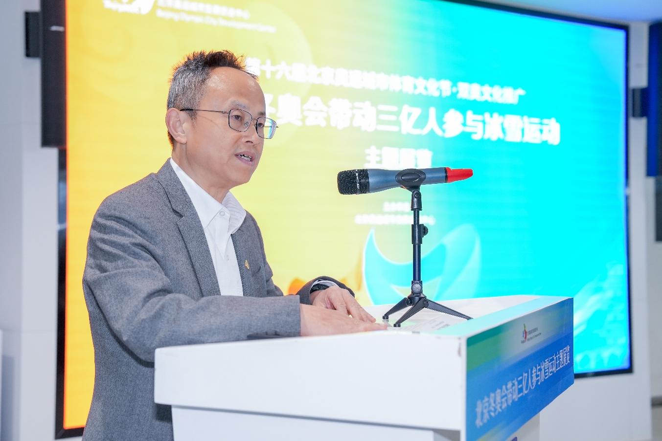 11月14日,由北京奥运城市发展促进中心主办的第十六届北京奥运城市体育文化节“双奥”文化推广系列活动“北京冬奥会带动三亿人参与冰雪运动”主题展览在国家游泳中心冰上运动中心开幕。