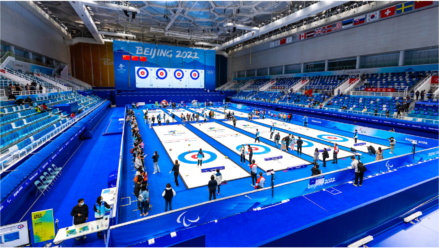 国家游泳中心在2008年北京奥运期间被称作“水立方”,北京冬奥期间用于举办冰壶比赛时则被称作“冰立方”。其是一个多功能场馆,可在游泳和冰上运动之间转换。如此灵活得益于在游泳池上方安装了预制钢架和混凝土板,并覆盖保温层与防水层。冰场则在其之上实现。整个转换过程大概需要20天,且设备可重复使用,从而极大降低了成本。