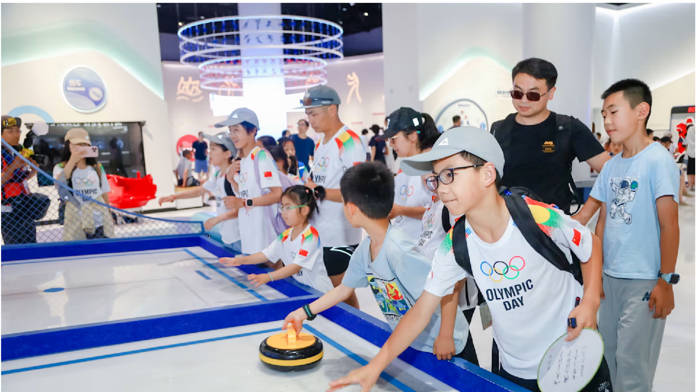 © 北京奥运城市发展促进会 - 参观北京奥运博物馆的青少年尝试冰壶运动。