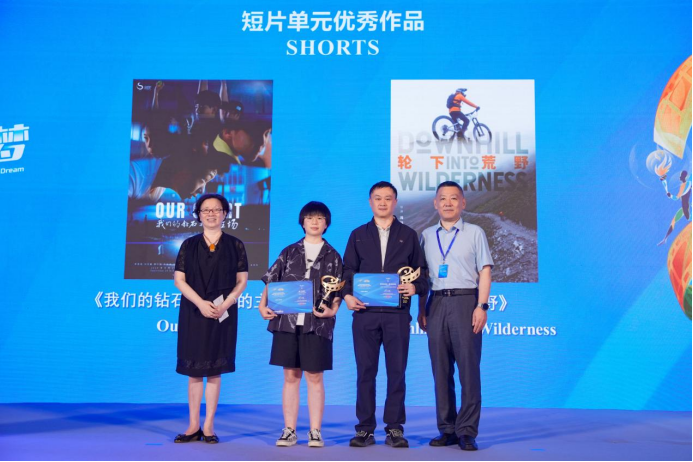 Wang Maoqiang and Wang Zhu presented trophies and certificates to the shortlists Our Courtand Downhill into Wilderness in the “Shorts” category.