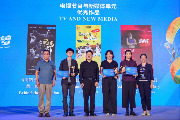 Chang Lin, Sun Chao and He Xinghui presented trophies and certificates to the shortlists in the “TV and New Media” category, Behind the Champion Episode 1: Wang Zhizhi, Young Players the Mountains and Asian Games Exemplary YOUNG – Hurdles.