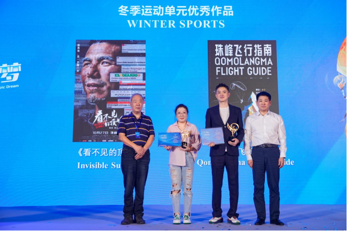 Chen Xuesong and Shan Wanli presented trophies and certificates to the shortlists Invisible Summit and Qomolangma Flight Guide in the “Winter Sports” category.