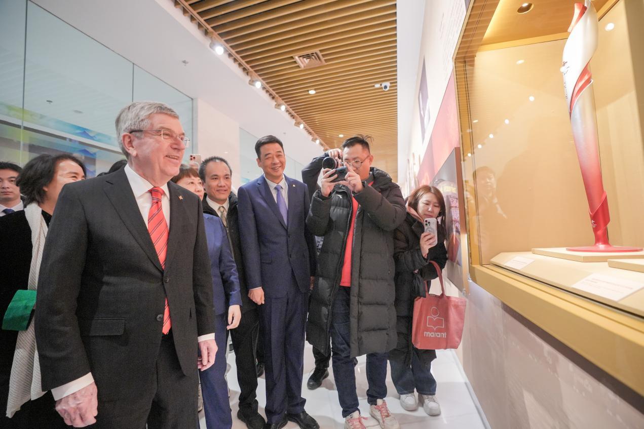 On the morning of 20 February, the Beijing Olympic Museum (BJOM) received a delegation led by Thomas Bach, President of the International Olympic Committee (IOC). They were welcomed by Sima Hong, Deputy Mayor of Beijing Municipality and Chairperson of the Beijing Olympic City Development Association (BODA), Han Zirong, member of the Party Leadership Group of the CPPCC Beijing Municipal Committee and Executive Vice Chairperson of BODA, and Fu Xiaohui, Director of the Beijing Olympic City Development Centre.