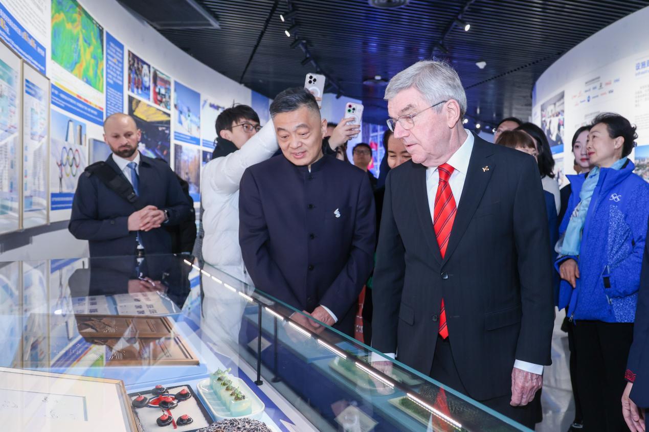 Bach showed great interest in the architectural models of Olympic venues in the three competition zones. He spoke the name of each competition venue and the relevant sports, recalling details during the preparation and hosting of the Beijing 2022 Games.
