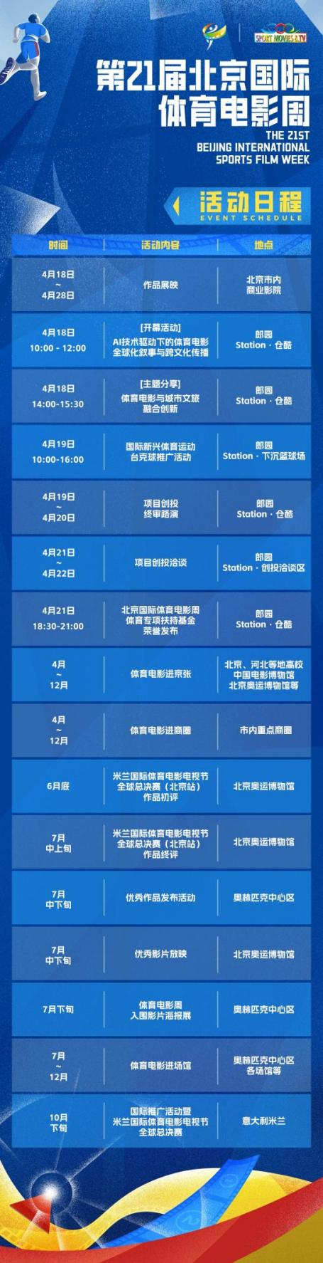 Appendix: Event Schedule of the 21st Beijing International Sports Film Week
