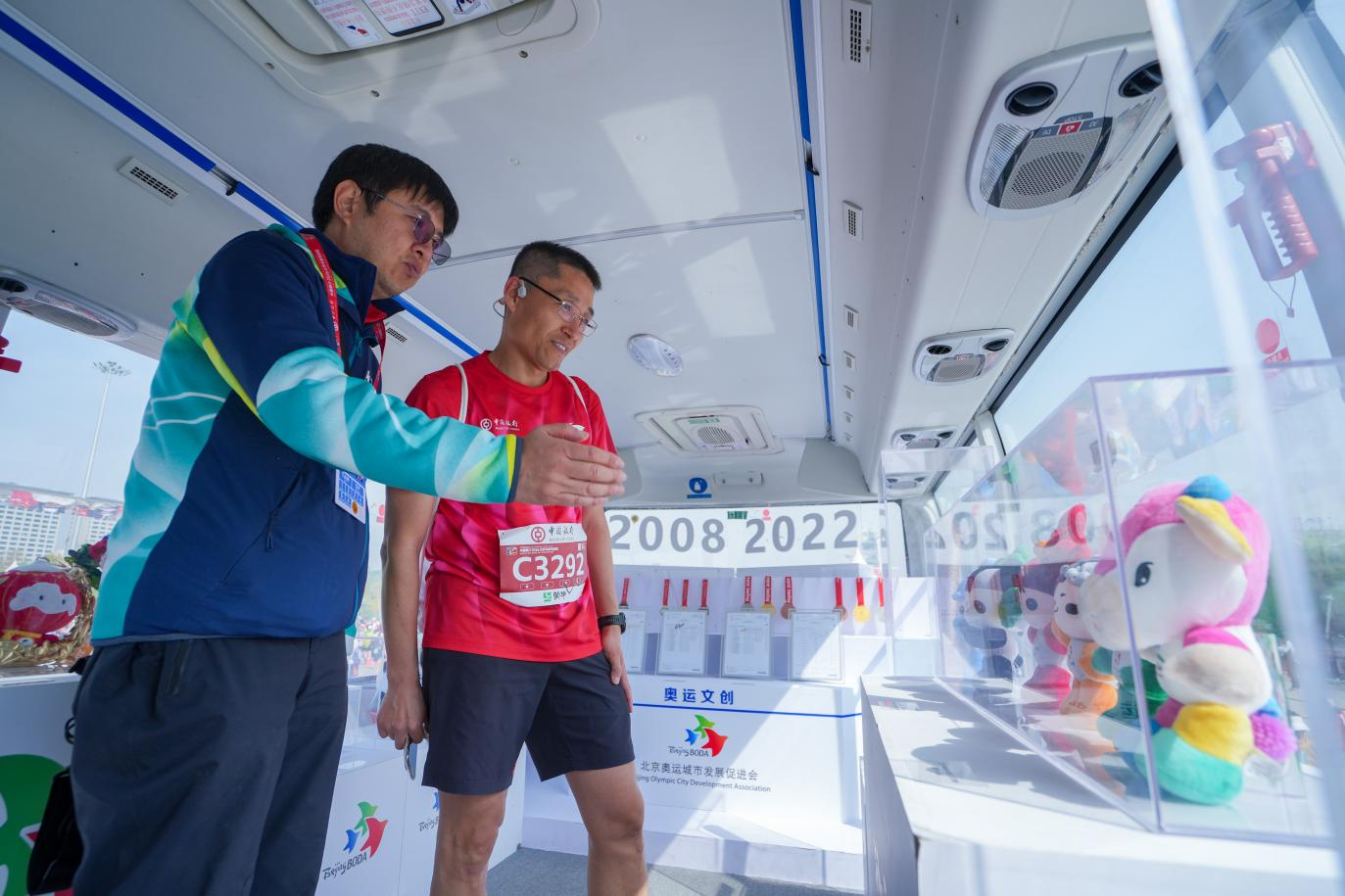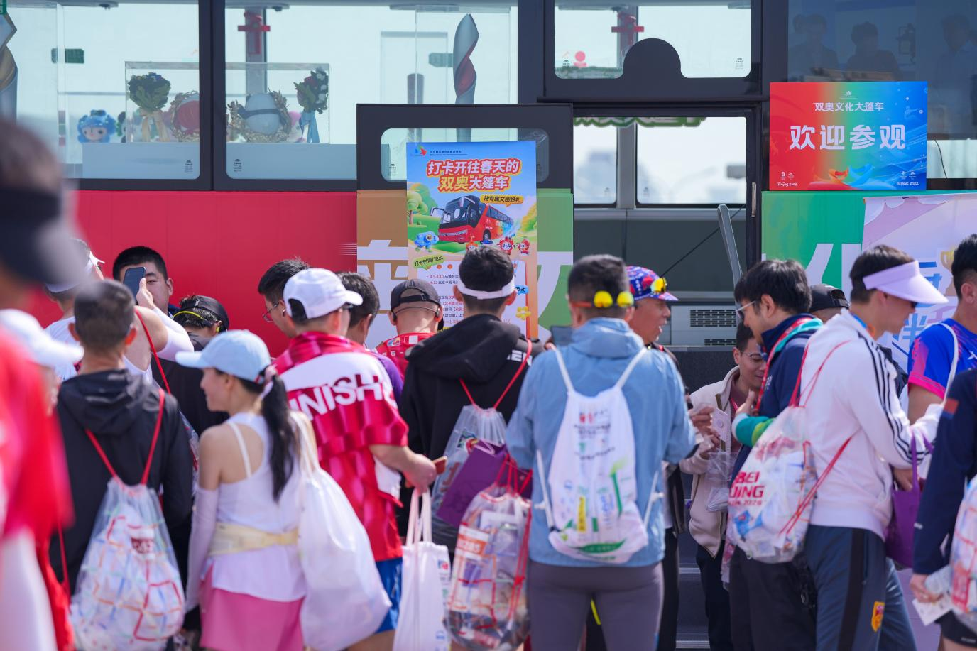 The “Olympic Culture Caravan,” co-designed by the Beijing Olympic City Development Association (BODA) and Beijing Tourism Group, showed up at the finish line of the event. The caravan presented Olympic-themed images and text, offered interactive experiences, and displayed a variety of cultural and creative products. It enabled runners and visitors to experience firsthand the charm of the dual Olympic culture, enriching the event with Olympic vibe.