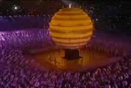北京市市长王岐山接过雅典奥运会会旗,标志着奥运会正式进入北京周期。