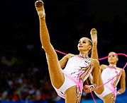 艺术体操的首次登场是在1984年的美国洛杉矶奥运会上,1996年的亚特兰大奥运会上,该项目以小组和团体形式参赛,获得一致好评。悉尼奥运会该项目将以四种形式出现:绳、环、球和缎带。小组赛中还加上棒……