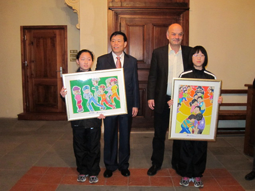 26日,访问团前往洛桑市政厅拜会并交流。洛桑市议员、洛桑市安全与体育部部长马克•维鲁米尔先生出面会见并致欢迎辞。访问团团长以不久前在北京召开的“洛桑峰会”开始,向马克先生介绍了北京立足奥运城市平台,积极弘扬奥林匹克精神,促进城市的实质性建设与发展以及拓展国际交流的理念,希望进一步加深与洛桑等奥运城市间的交流与合作。交流过程中,在青少年奥林匹克主题绘画比赛中获奖的中学生营员、宣武区外国语学校的王璇,代表北京中学生向马克先生赠送了自己创作的青少年体育绘画作品。访问团还将“北京奥运城市体育文化节”及“我运动,我快乐,我健康”青少年奥林匹克主题教育系列活动的宣传册赠送洛桑市政府。