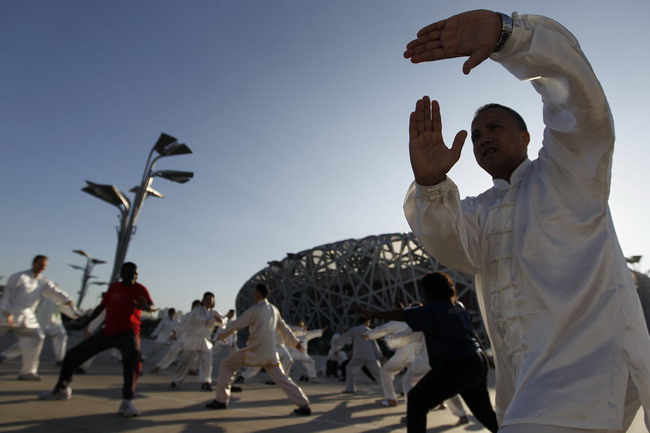 晨练活动吸引了参会代表的积极参与,他们身着组委会专门准备的太极拳服装,在鸟巢和水立方之间的广场上,在北京阳光明媚的秋日里,接受由北京语言文化大学专职教练用英语教授的太极拳。