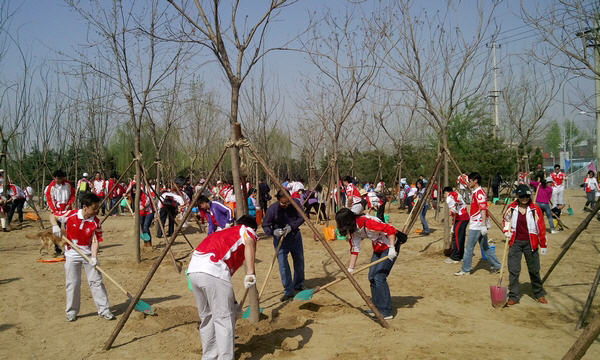 4月14日,在朝阳区南四环东路肖村桥边上,由奥运火炬手、志愿者、建设者、赞助商以及原北京奥组委工作人员等组成的“奥运之家”会员们,在春日暖阳的沐浴下,兴致勃勃地开展了春季义务植树活动,为认真贯彻落实总书记提出的“北京必须在绿化美化工作中走在前面”的要求,为坚决完成北京市20万亩植树造林任务,构建城市森林生态系统,进一步提升城市生态环境、满足市民生态需求,提高首都的生态承载能力、绿色增长能力和可持续发展能力,做出“奥运人”的贡献。
