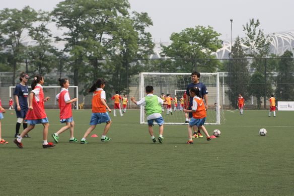 6月10日上午,2011年北京市中小学校园足球赛“学转英超”体育教师培训活动结业典礼在国家奥林匹克体育中心足球场举行。40名体育教师以“现教现演现练”的方式,将自己在培训课程中学到的知识教授给数十名小学生足球爱好者,并带领他们进行了一小时的汇报表演。