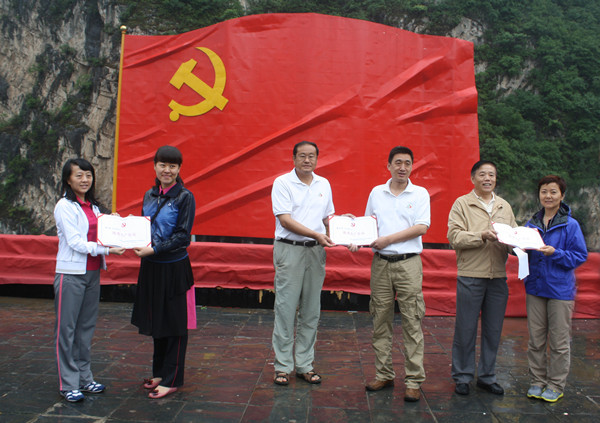 为纪念中国共产党建党91周年,使党员干部接受党史和革命传统教育,切实增强党性观念,强化开展奥运财富传承开发工作的政治保障,6月28日,北京奥促中心机关党委组织全体党员、入党积极分子和机关干部40余人冒雨来到歌曲《没有共产党就没有新中国》的诞生地——房山区霞云岭乡堂上村爱国主义教育基地参观学习,开展了以“重唱一首歌曲 追寻一条道路 感悟一个真理”为主题的“庆‘七一’党日活动。