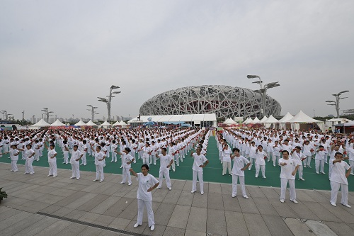 8月10日下午,由北京市体育总会、奥促会主办,北京市回春保健操协会承办的千人回春保健操汇报表演在南区举办。包括少儿方阵、残疾人方阵在内的24支队伍表演了精彩的回春保健操。中宣部老干部局局长马栓柱、国务院国资委石化离退休干部局局长吴甫、中国老年人体育协会副主席曲志东、北京市体育局副局长李丽莉、奥促中心副主任赵卫、北京市体育总会秘书长张朝晖出席活动并向来自房山的灾民代表赠送了由第三届北京奥运城市体育文化节组委会提供的慰问品。