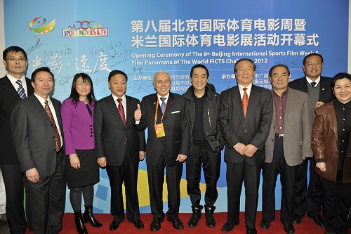 2012年11月15日晚,第八届北京国际体育电影周开幕式在北京航空航天大学晨兴音乐厅在京开幕。北京国际体育电影周组委会副主席、全国政协教科文卫体委员会副主任、北京奥运城市发展促进会副会长蒋效愚,北京市委宣传部副部长张淼,北京奥运城市发展促进中心主任吴京汨,国际体育电影电视联合会主席弗兰克•阿斯卡尼,国际体育电影电视联合会第一副主席、乌干达广播公司总裁安德鲁•卢旺达咖,中国著名导演张艺谋,著名影视演员陈佩斯、朱时茂以及体育文化界知名人士出席开幕式。