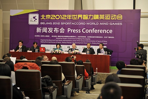 12月12日至19日,由世界体育总会授权,北京市人民政府主办,国家体育总局棋牌运动管理中心、北京市体育局、北京奥运城市发展促进会、北京广播电视台共同承办的北京2012年世界智力精英运动会将在北京国际会议中心举办。来自39个国家的150多名世界顶尖选手将同台竞技,在国际象棋、桥牌、围棋、国际跳棋、象棋5个项目中展开角逐。
