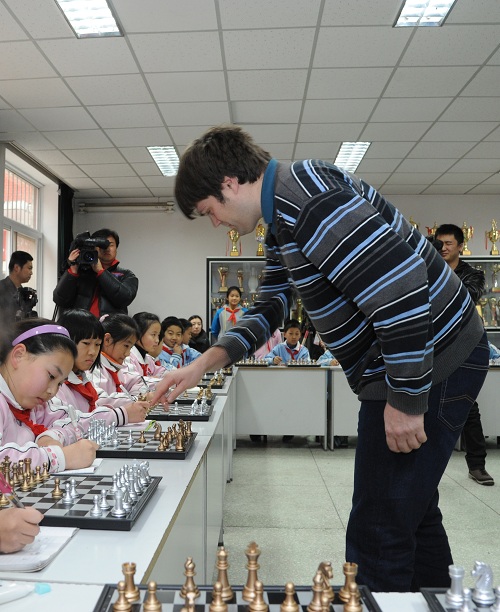 国际象棋大师进校园与小学生交流棋艺