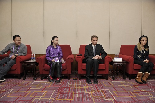 17日晚, 俄罗斯的阿列克谢(国际跳棋)、中华台北的黑嘉嘉(围棋)、中国的候逸凡(国际象棋)、中国香港的陈振杰(象棋)、荷兰的布林克(桥牌)5名智运会单项形象大使,接受了北京日报、北京青年报、北京晨报、北京体育广播电台等媒体的集体采访。