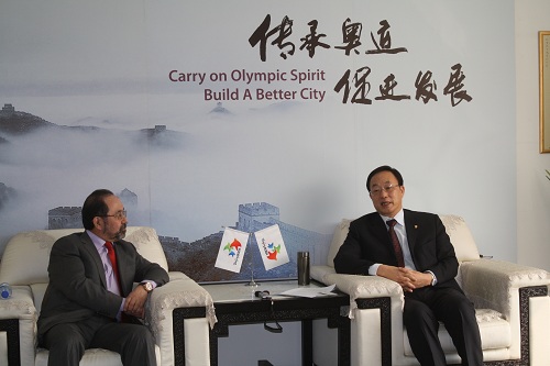 3月16日,为加强中俄双方体育方面的交流与合作,全国政协教科文卫体委员会副主任、北京奥运城市发展促进会常务副会长刘敬民接受了俄罗斯国家通讯社俄通—塔斯社主编阿布哈金、驻京分社长基里洛夫和《俄罗斯报》首席记者索罗维耶夫的联合采访。