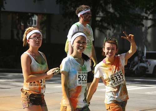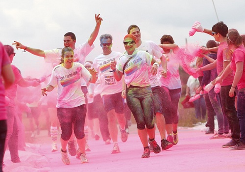 “彩色跑”是一项5公里长的跑步娱乐项目,2011年发源于美国。与传统跑步相比,它更注重“参与、娱乐和色彩”。去年,全球60多万人参加此项活动。