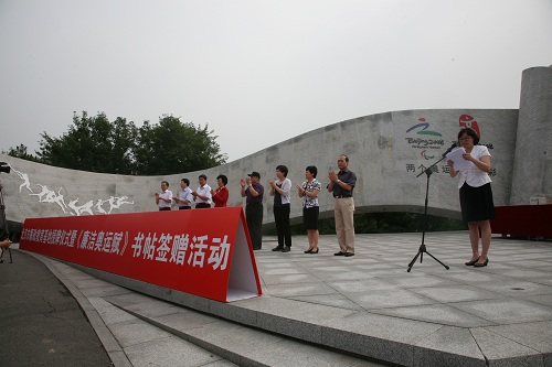 为纪念北京申奥成功十二周年,推动廉政文化建设纵深发展,弘扬奥运精神和廉洁奥运的经验做法,2013年7月13日上午,在奥林匹克森林公园廉洁奥运主题文化园《廉洁奥运赋》雕塑广场成功举办了“北京市廉政教育基地授牌仪式暨《廉洁奥运赋》书帖签赠活动”。