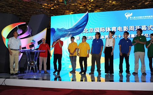 8月8日下午,第九届北京国际体育电影周开幕式在“鸟巢”金色大厅举行。北京奥运城市发展促进会副会长王伟宣布第九届北京国际体育电影周开幕并向“我的梦”体育短片十日竞赛的10位导演组授旗