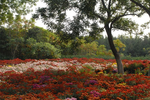 本届花展,展出的花卉主要有波斯菊和百日草,展区位于北园花田野趣景区内,是我市城区内这两种花卉种植面积最大的展区。其中,波斯菊展区位于花田野区景区的西侧,目前已大面积开放,形成了一片花海的壮观景象。景区东侧为百日草展区,条状种植的各色百日草也已绽放,黄色、粉色、红色、橙色、白色,宛如一条条彩带铺展在大地上。在南园湿地景区东南侧、仰山山坡上新种植的数万株各色秋菊,也已全部开放。