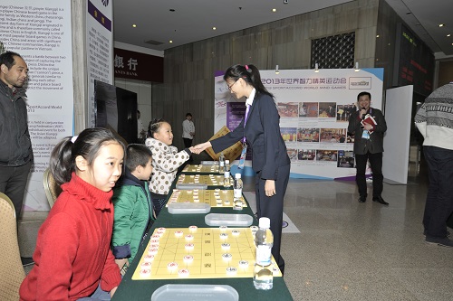 12月13日上午,一批小客人来到了位于北京国际会议中心的北京2013年世界智力精英运动会现场,给紧张的赛场带来了轻松、活跃的气息——这些来自垂杨柳教辅中心的同学们是来和参加智运会的象棋大师们“交手”的。