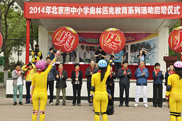 4月16日,2014年北京市中小学奥林匹克教育系列活动在朝阳区十八里店小学启动。北京市副市长杨晓超,全国政协教科文卫体委员会副主任、北京奥运城市发展促进会常务副会长刘敬民,北京奥运城市发展促进会副会长蒋效愚,  教育部体卫艺司司长王登峰,国家体育总局青少年体育司副巡视员黄美荣以及市教委、市体育局、团市委等部门负责同志出席启动仪式。