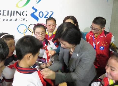 “希望能让孩子们有更多机会接触冰雪运动,让滑冰滑雪成为一种时尚和新的生活方式。”王惠说,“如果申办成功,北京将建第一座大道 速滑馆,等你们长大了都可以去!”