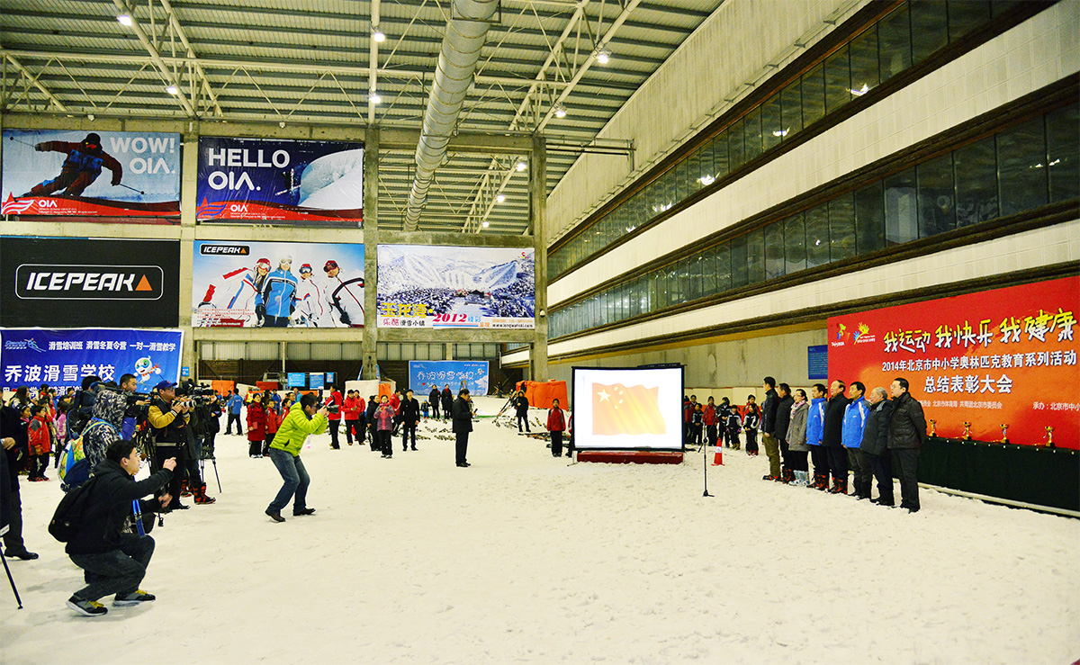 为支持北京申办2022年冬季奥运会,由北京奥运城市发展促进会、市教委市、市体育局主办的2014年北京市中小学滑雪比赛暨奥林匹克教育系列活动总结表彰大会于2014年12月21日在北京乔波国际滑雪馆举行。