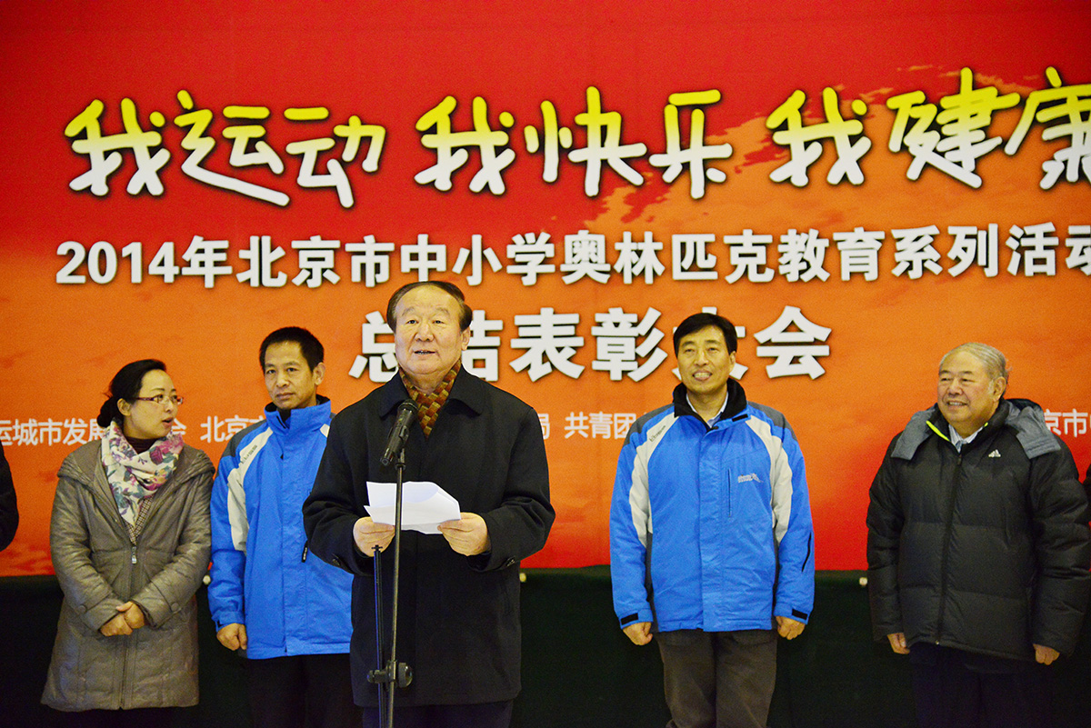 北京奥运城市发展促进会副会长蒋效愚等领导出席活动,向在2014年奥林匹克教育工作中做出突出贡献的团体和个人颁奖,并向“北京青少年申冬奥助威团”学生代表授旗。蒋效愚在讲话中鼓励广大中小学生上冰场、去雪场,参与冬季项目,体验冰雪快乐,以自己的实际行动支持北京和张家口申办冬奥会。