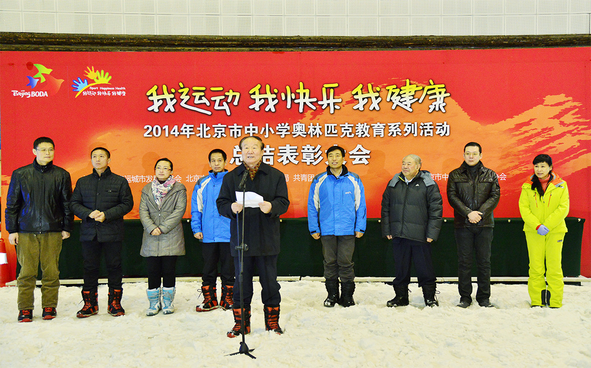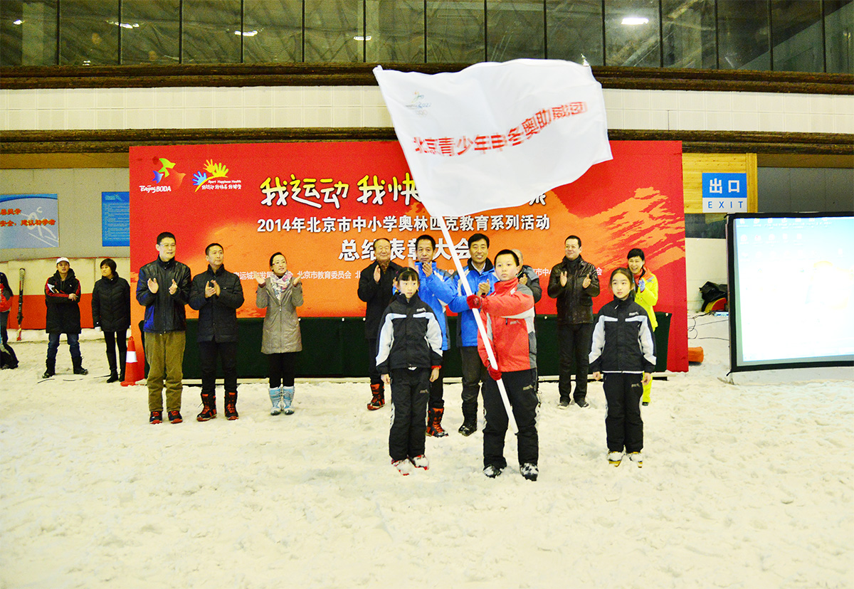 为支持北京申办2022年冬季奥运会,由北京奥运城市发展促进会、市教委市、市体育局主办的2014年北京市中小学滑雪比赛暨奥林匹克教育系列活动总结表彰大会于2014年12月21日在北京乔波国际滑雪馆举行。