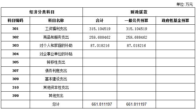 2014年度一般公共预算财政拨款支出661.811197万元,主要用于以下方面(按大类):工资福利支出:315.104519 万元,占本年财政拨款支出的47.61%;商品和服务支出:259.688462万元,占本年财政拨款支出的39.24%;对个人和家庭的补助支出:87.018216万元,占本年财政拨款支出的13.15%;