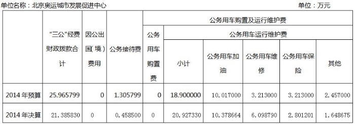 北京奥运城市发展促进中心因公出国费用、公务接待费、公务用车购置和公务用车运行维护费开支范围仅指本单位1个一级预算单位。(正局级差额拨款事业单位)。