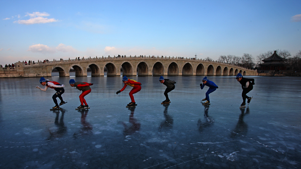 参展的100幅优秀作品是从全国著名摄影家、优秀摄影师及摄影爱好者征集来的近千幅作品中精选而来,分以下三个单元进行展出:一、北京以及张家口主要名胜古迹、标志性建筑和城市的雪景照片;二、北京、张家口两地的传统冰雪运动、冰雪艺术、全民健身活动的图片;三、全国各地进行的冰雪运动和参与冰雪运动的图片。