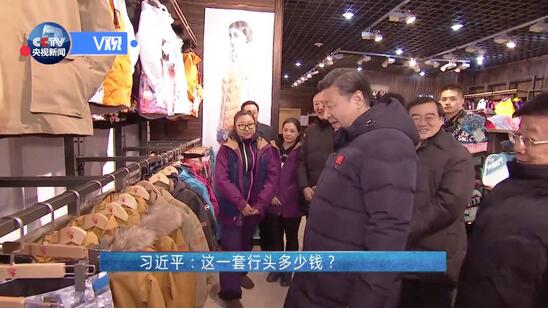 习近平在云顶滑雪场考察时,看到各式各样的头盔、雪鞋、雪服摆在商店里销售,他询问销售人员置办一套滑雪行头要花多少钱。销售人员高兴地对总书记说,现在装备卖得都还不错,受举办冬奥会助力,参与和投入冰雪运动的人越来越多,市场也越来越旺。