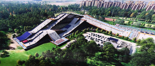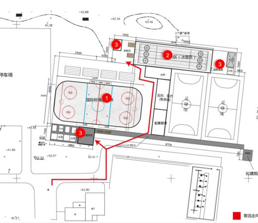 据水立方副总经理李云峰介绍,未来南广场的旋转楼梯入口下将是一个8453平方米的全地下冰场。冰场划分为4个区域:一个1830平米的标准冰场、一个1000平米的标准4道冰壶场地、功能区以及冬奥体育文化展示区。冰场和冰壶场地将对公众开放,服务于大众滑冰和专业培训以及体育赛事和大型活动。赛时,冰壶赛道可以作为运动员的热身场地。而功能区将包括办公室、接待前台、机房、休息区、水吧等零散的部分。冬奥体育文化展示区作将展出冬奥历史图片、具有历史意义的冰上运动器具,主要以普及介绍冰壶运动为主。水立方南广场以地下空间为主,建冰场不会降低绿地面积,也不会影响广场以及周边公园景观。