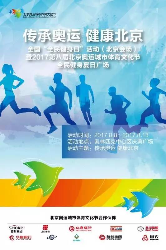 第八届北京奥运城市体育文化节即将于8月8日开幕,届时将为广大市民提供强身健体、分享快乐、感受激情、开拓视野的互动平台。该文化节是以纪念奥运会成功举办,弘扬奥运精神,开展国际交流,促进全民健身,丰富市民生活为主题的一个大型综合性城市体育文化活动。自2010年起,奥运城市体育文化节已成功举办七届!