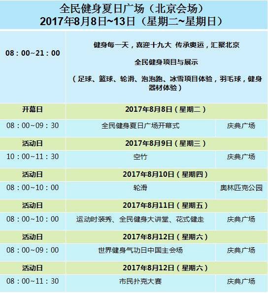 活动安排一目了然,有木有?除此之外,特意奉上北京奥运城市体育文化节5日玩乐攻略一份,拿走不谢!