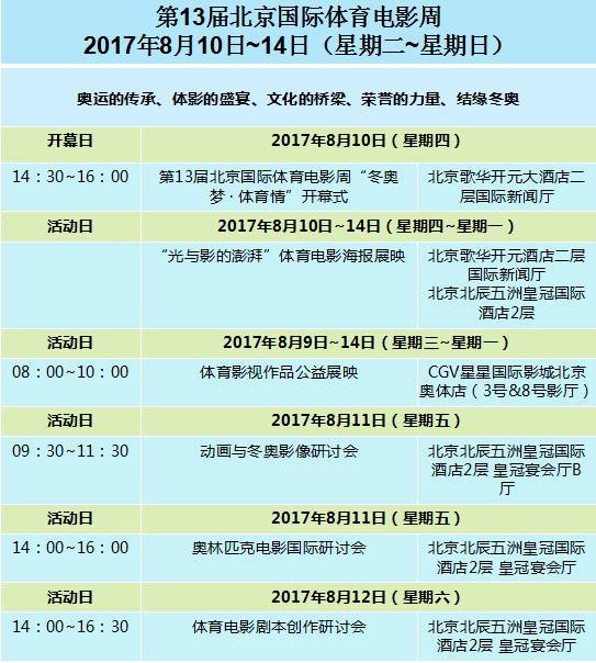 上午8点到十点,在奥林匹克公园玩轮滑;下午两点半至四点,去北京歌华开元大酒店二层国际新闻厅参加第13届北京国际体育电影周“冬奥梦·体育请”开幕式。